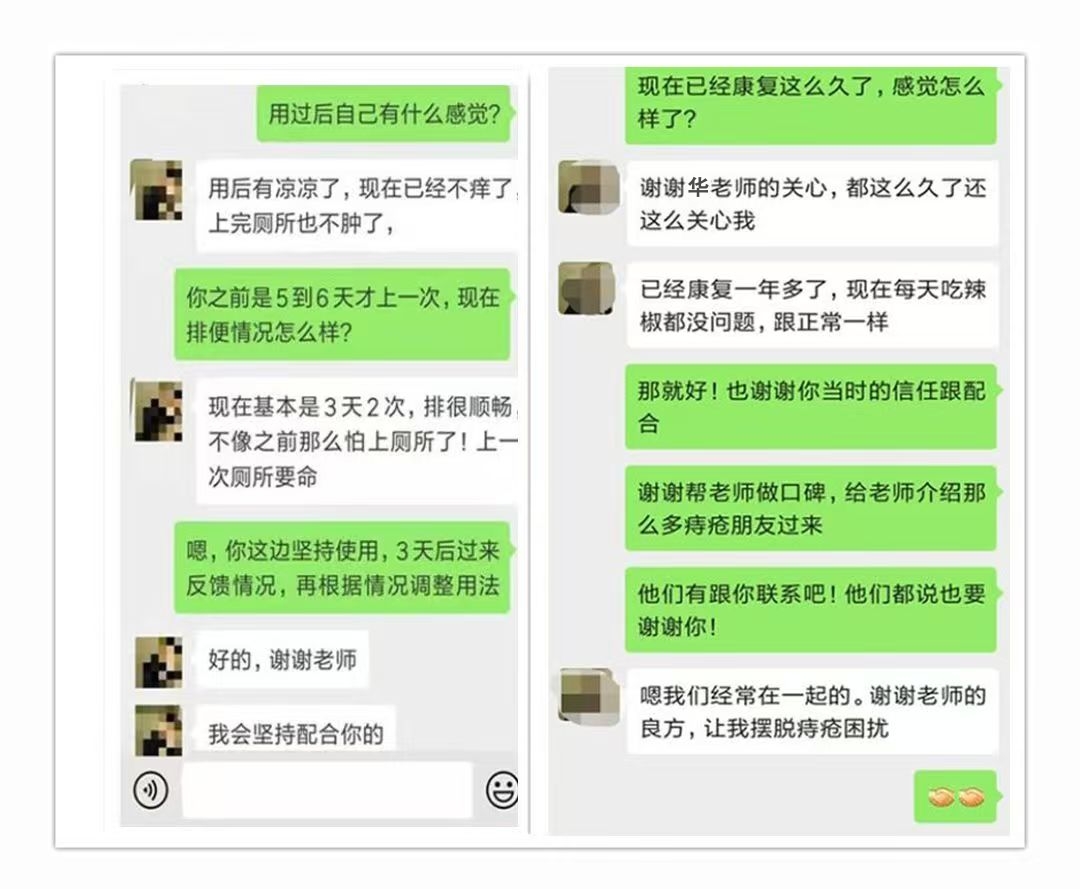 后来去医院时候相识的几个“痔”友听说我的痔疮好了,问我方法,我把微信号:HSGF1258(点击微信号添加)推荐给他们,没想到他们也同样脱离了痔疮的苦海!一个外痔的用了20天的时候说外痔没了,另外两个一个内痔脱出还一个跟我一样混合痔的也都好了!